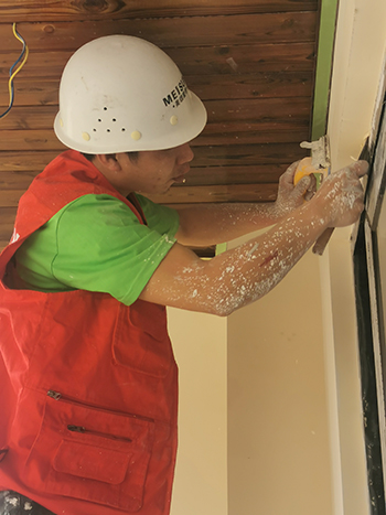 除了自己的事,多為公司考慮,多為客戶考慮,事情是團隊一起做好的。映像最深刻的是,有一天畢義師傅在一個別墅工地上施工,高高地站在腳手架上,客戶到工地現(xiàn)場來了解施工情況。畢義師傅立馬放下手中的工作從腳手架上下來,把工地上的雜物從一樓到三樓每一處都收拾好,連地上的灰塵都仔仔細(xì)細(xì)地掃了一遍,讓客戶能在干凈的工地上安全視察。